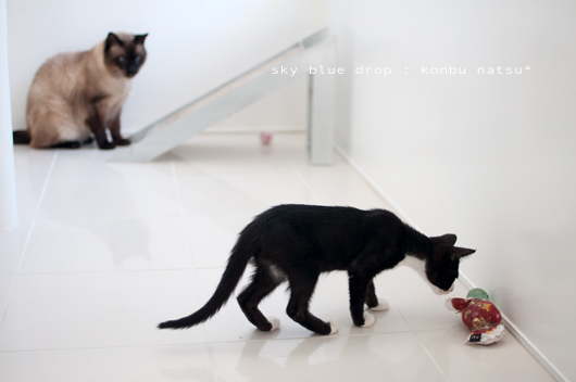 あっ(^o^)!なっちゃんの開きだ~ ナンカ電気の傘がお腹にぶらさがってるようにみえる(*_*; 晴ちゃんとなっちゃんのおんにゃの戦いに「あの娘」は参加しにこなかったんだね・・・ じじい(じいじ)と遊んでいたのかな?^m^