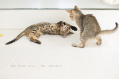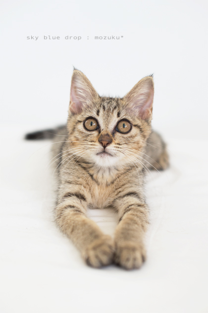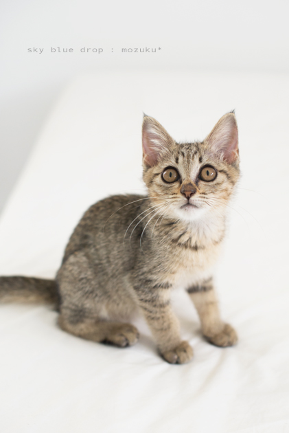 | ☆もずくちゃん きじとら♀ 生後約2ヶ月 体重780g ノミダニ・寄生虫駆虫済み 検便(−) 1回目ワクチン接種済み 猫エイズ(FIV)猫白血病(FeLV)共に陰性(−) 縞模様は薄めのきじとらの女の子♪ アイラインくっきりおめめぱっちりの美人さんです。 ゴロゴロすりすりとっても甘えん坊で 寝る時ぴとりとくっついて来ます(ΦωΦ)b シッポは長くてまっすぐです。 |