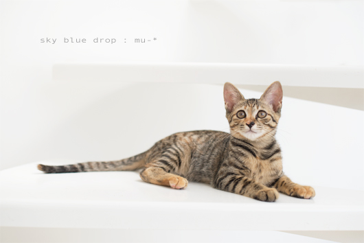 | ☆むーちゃん むぎわら♀ 生後約4ヶ月 体重1200g ノミダニ・寄生虫駆虫済み 検便(−) 2回目ワクチン接種済み 母猫:猫エイズ(FIV)猫白血病(FeLV)共に陰性(−) 正面から見ると普通のきじとらっぽいですが、 赤茶とこげ茶が混じった様な個性的な柄をしております。 手足&しっぽがとってもながーいスタイルバツグンの女の子です♪ とっかかりは少し怖がったりしておりましたが、 今やなでなでだーい好きな甘えっ子に大変身しております。 名前を呼ぶとながーいしっぽをピンと立てて てけてけーっと後ろをついて来ます。 |