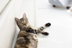 お気に入りのベッドでぬくぬくしてたのに