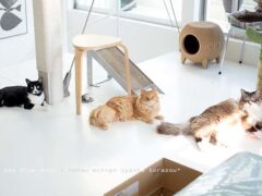 とらぞうが足もとにすりーと体を添わせながら