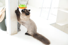 今も爪とぎ柱にウキーッと登ってピカーとこっちみてます。