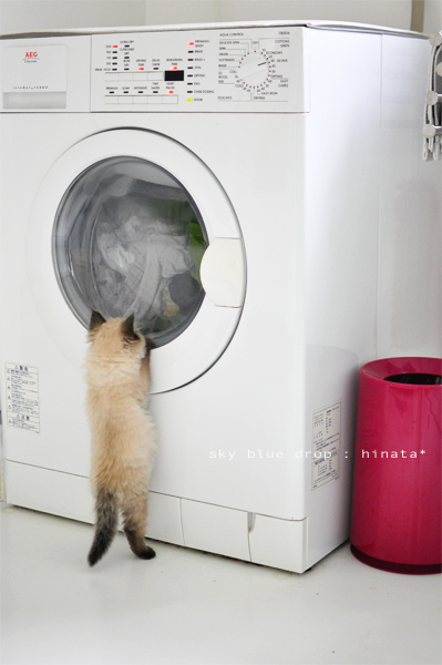 子猫って必ずドラムの洗濯物を追いかけますよね。